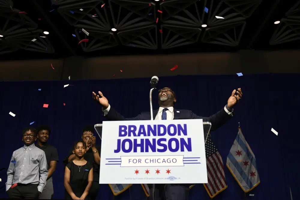 Chicago Mayor-elect Brandon Johnson celebrates with supporters after defeating Paul Vallas after the mayoral runoff election late Tuesday, April 4, 2023, in Chicago. For many progressives, the past decade has been littered with disappointments. But recent down-ballot victories are providing hope of reshaping the Democratic Party from the bottom up, rather than from Washington.