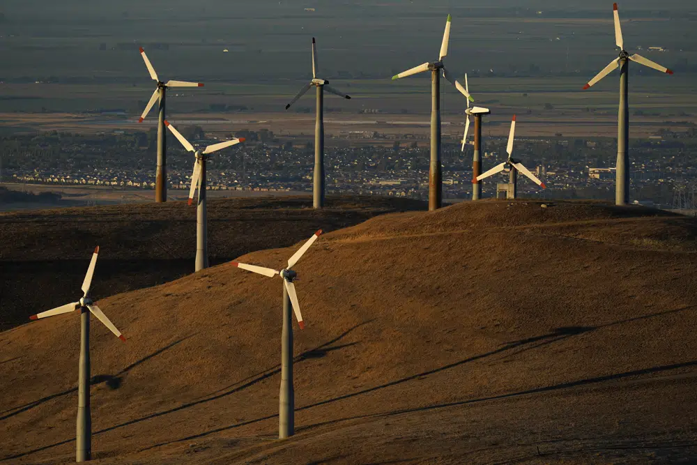 Wind turbines operate in Livermore, Calif., on Wednesday, Aug. 10, 2022. Across Europe companies are weighing up the U.S. Inflation Reduction Act's $375 billion in benefits for renewable industries against the European Union's fragmented response. (AP Photo/Godofredo A. Vásquez, File)