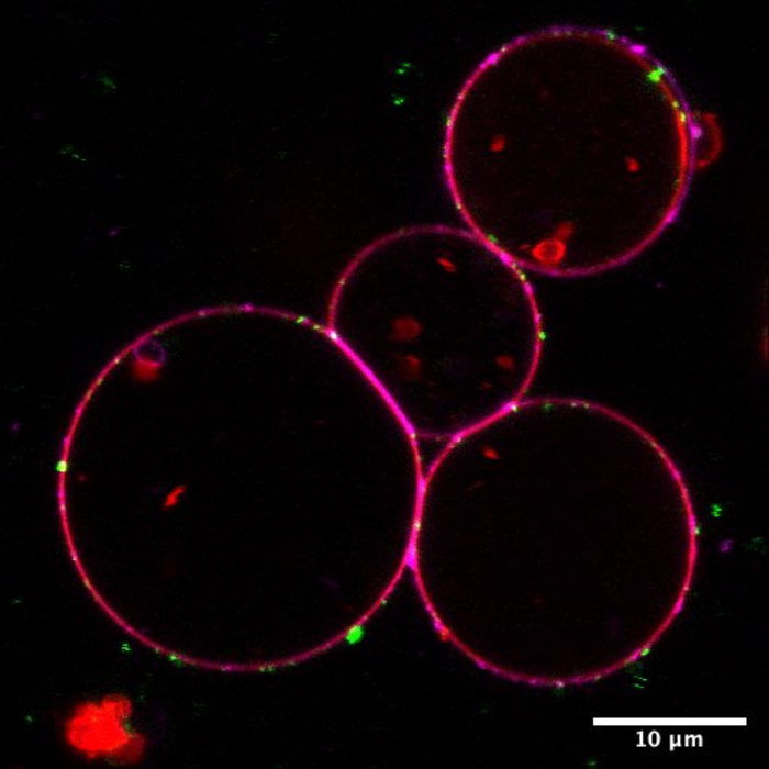 Peer-Reviewed PublicationIMAGE: FLUORESCENT LIPIDS SHOW HOW THE NANOMACHINE ACCELERATES LIPID TRANSFER WHEN NECESSARY. view more