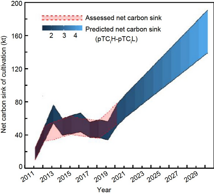 A marine research team led by Professor YAN Qingyun has proposed a method to assess the net carbon sink of marine macroalgae (Gracilaria) cultivation. Then, they calculated the net carbon sink of Gracilaria cultivation in China based on the yield of annual cultivated Gracilaria in the last ten years. Also, the net carbon sink trend of Gracilaria cultivation in the next ten years was predicted by the autoregressive integrated moving average model (ARIMA). Finally, they explored the potential carbon sink increase and methane reduction related to Gracilaria cultivation in China through a scenario analysis.