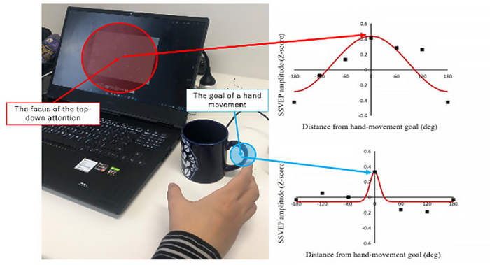 "Based on the experiments, we concluded that when top-down attention is oriented to a location far from the future hand location, the visual processing of future hand location still occurs. We also found that this process has a much narrower spatial window than top-down attention, suggesting that the processes are separate," adds Satoshi.