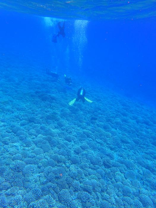 Marine biologists sample reefs of Pocillopora corals. Researchers at Rice University and Oregon State University studied corals and found fragments of non-retroviruses in the genomes of their symbionts, perhaps the result of infections millions of years ago. (Credit: Andrew Thurber/Oregon State University)