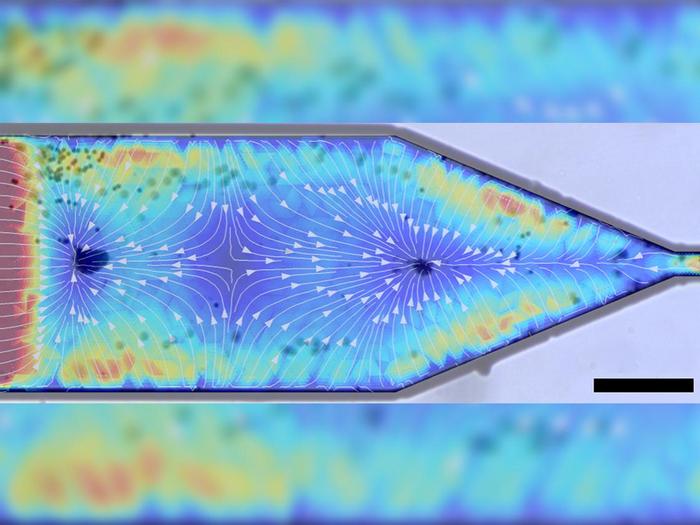 “We engineered a microchannel nozzle and applied ultrasound energy to the system,” said corresponding author Igor Aronson, the Penn State Dorothy Foehr Huck and J. Lloyd Huck Chair Professor of Biomedical Engineering and professor of chemistry and of mathematics. “The nozzle plays two roles. It concentrates fluid flow, which is something other researchers have done. But in addition to that, the walls of the nozzle reflect the acoustic waves of the ultrasound energy.”