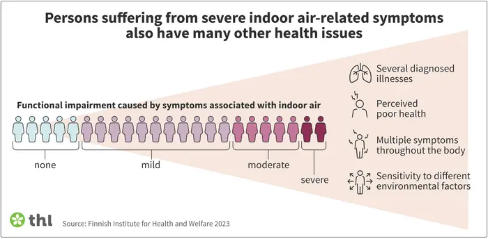 Approximately one in five people in Finland reported they experienced symptoms related to indoor air. Some of them did not think the symptoms affected their functional capacity at all, but a small part found that the symptoms caused significant functional impairment.