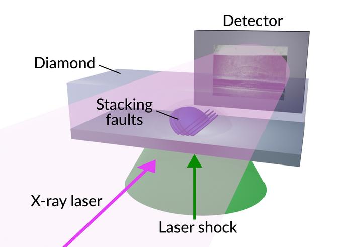To get the first direct images of how fast dislocations can travel, researchers used an intense laser beam to drive shock waves through diamond crystals. Then they used an X-ray laser beam to make a series of X-ray images of the dislocations forming and spreading on a timescale of billionths of a second. The images, similar to medical X-rays that reveal the inside of the body, were recorded on a detector.