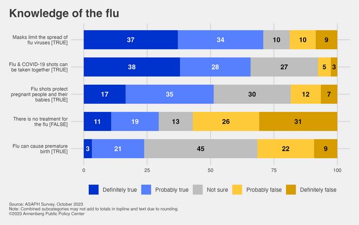 Knowledge of the flu. From the Annenberg Public Policy Center's Annenberg Science and Public Health Knowledge survey Oct. 5-12, 2023.