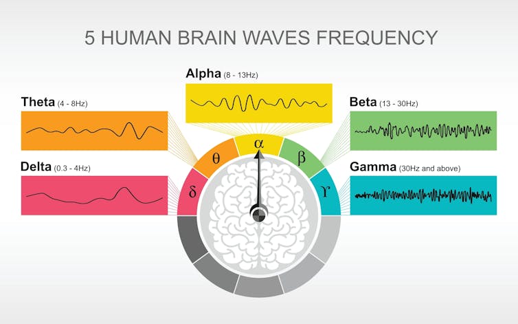 Brainwaves are grouped into five different wavelength categories. Shutterstock