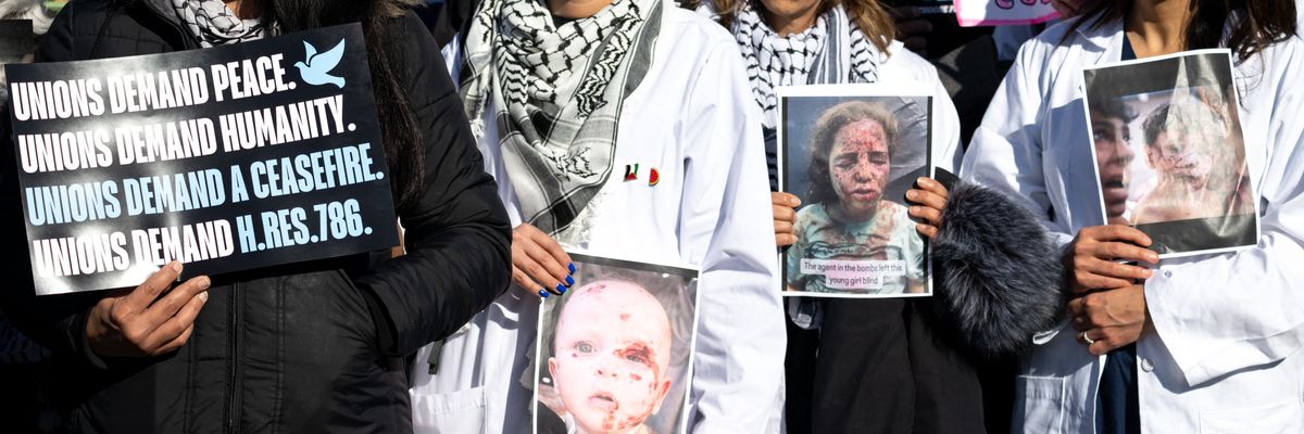 "Working to provide care amid this ongoing assault has taken an enormous toll on the mental and physical health of the sector's workers," said the groups, including the Palestinian Respiratory Care Association, the Emergency Medical Service Union, and the Palestinian Occupational Therapy Association. "In the face of these formidable challenges, we call upon healthcare unions worldwide to rally in solidarity with the Palestinian health sector."