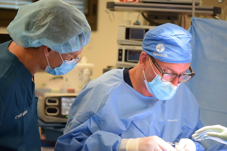 Professor Nathan Lawrentschuk during the first insertion of the hydrogel that researchers say acts as a "no scalpel vasectomy".(Supplied: Epworth HealthCare)