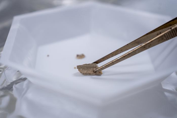 SINA BELEKA, A POST-DOCTORAL RESEARCHER AT THE MCMASTER ANCIENT DNA CENTRE AND CO-AUTHOR OF THE STUDY EXAMINES A SAMPLE.