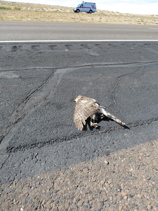 TAGGED JUVENILE FEMALE COOPER’S HAWK FROM OUR STUDY THAT DIED FROM A VEHICLE COLLISION ON INTERSTATE 25 IN BELEN, NEW MEXICO DURING HER INITIAL DISPERSAL FROM HER NATAL SITE. THIS WAS A PARTICULARLY RISKY TIME FOR JUVENILE COOPER’S HAWKS.
