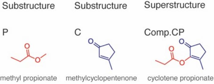 CYCLOTENE PROPIONATE (COMP.CP) IS STRUCTURALLY A COMPOSITE OF METHYL PROPIONATE (P) AND METHYLCYCLOPENTENONE (C).