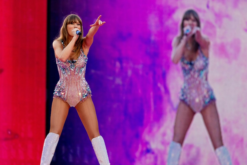 Taylor Swift marked another milestone in recent weeks, performing in front of her largest crowd ever in Melbourne.(ABC News: Brendan Esposito)