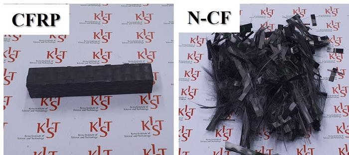 Before and after images of CFRP (Carbon fiber reinforced plastic) recycled into water