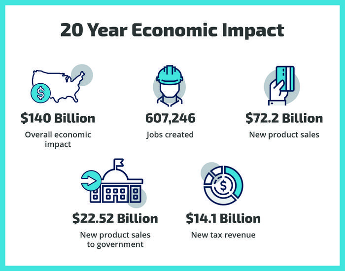 The two studies, conducted by TechLink, a federally funded technology transfer center at Montana State University, show: $140 billion in overall economic impact, $72.2 billion in new product sales, $22.52 billion in new product sales to the government, $14.1 billion in new tax revenue and 607,246 jobs created.