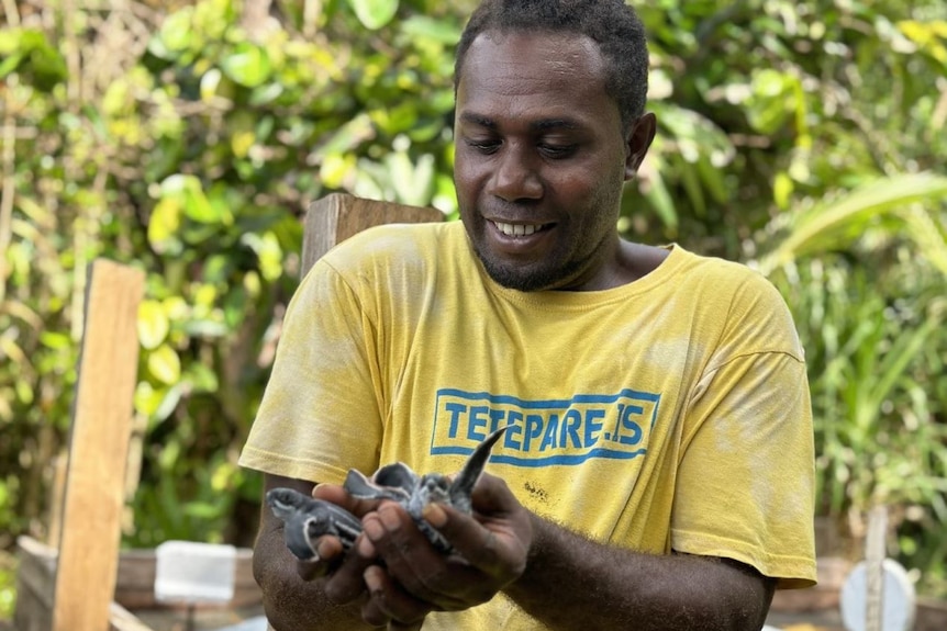 Clement Limae is part of efforts to protect the leatherback turtle population.(ABC News: Chrisnrita Aumanu-Leong)