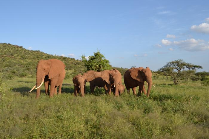 An elephant family forages together during the rainy season. Credit: George Wittemyer