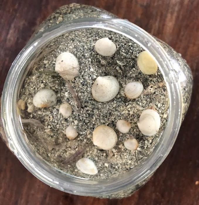 Lucinid clams of various sizes, collected for further analysis in the laboratory.