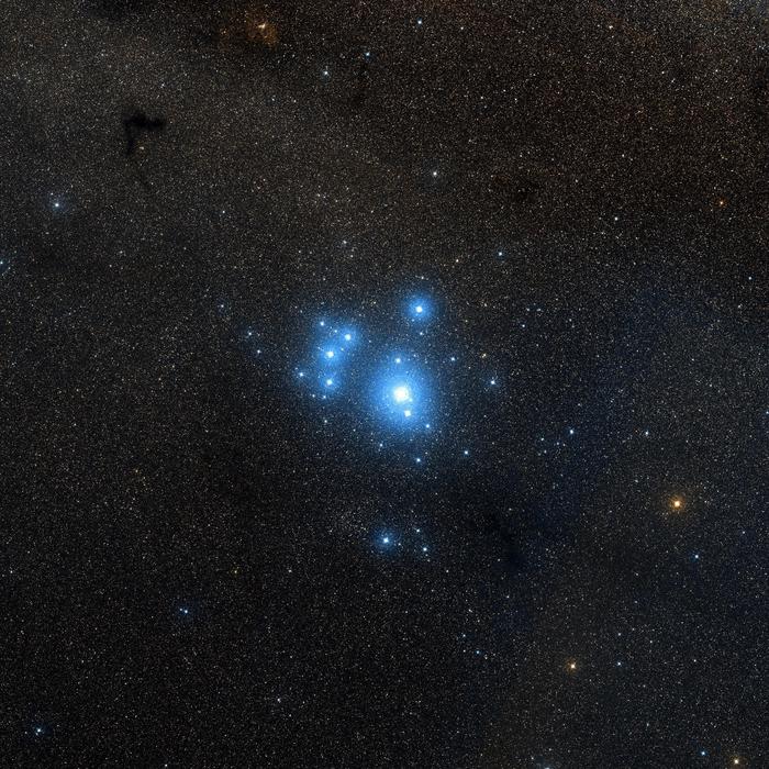 The IC 2602 star cluster: An optical image of the IC 2602 star cluster, also known as the "Southern Pleiades", from the second Digitized Sky Survey (DSS-II). It is a member of the Alpha Persei family.