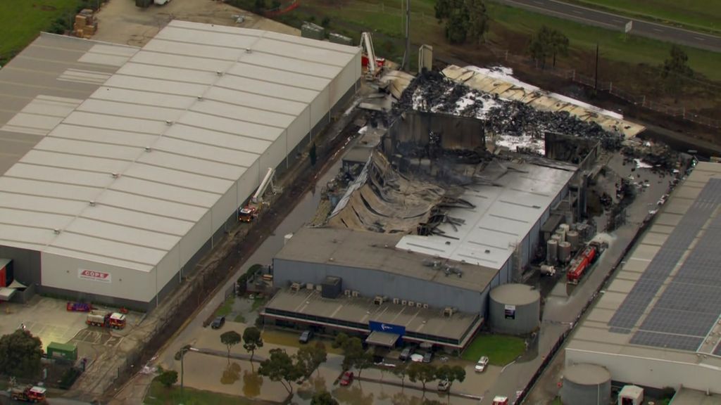 Fire crews to remain at the site of a huge factory fire in Melbourne's west
