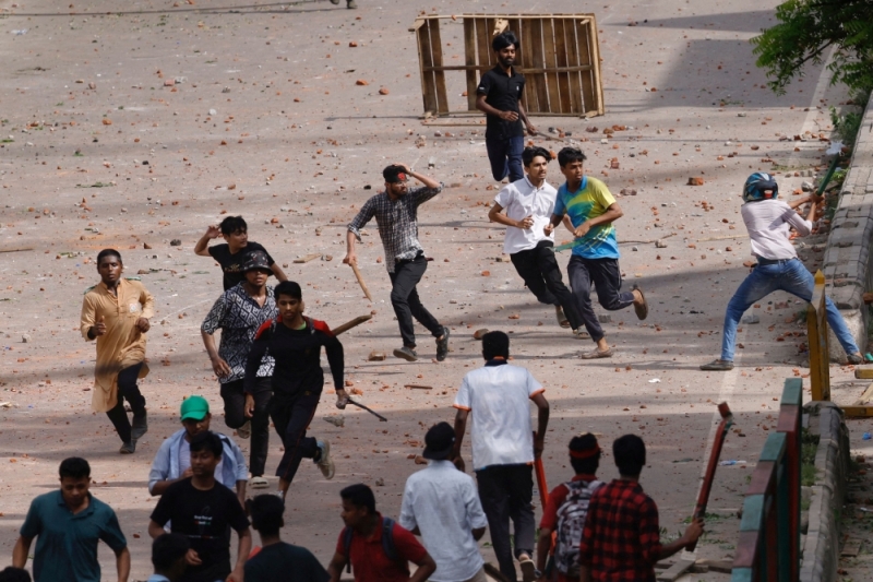 Bangladesh Chhatra League, the student wing of the ruling party Bangladesh Awami League, and anti-quota protesters engage in a clash at the Dhaka College area, in Dhaka, Bangladesh, July 16, 2024. —
