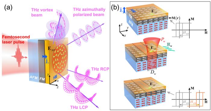 This new research, led by Prof. Zhensheng Tao, Prof. Yizheng Wu from Fudan University and Prof. Yan Zhang from Capital Normal University, overcomes these limitations by employing programmable spintronic emitters based on exchange-biased magnetic multilayers. These devices consist of thin layers of magnetic and non-magnetic materials that convert laser-induced spin-polarized currents into broadband terahertz radiation.