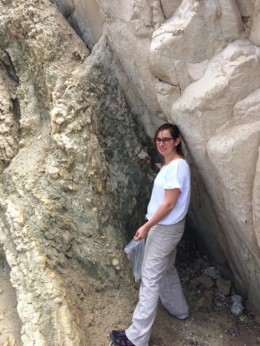Konstantina Agiadi at the Laganas coast, on Zakynthos, Greece, where the end of the Messinian Salinity Crisis can be observed.
