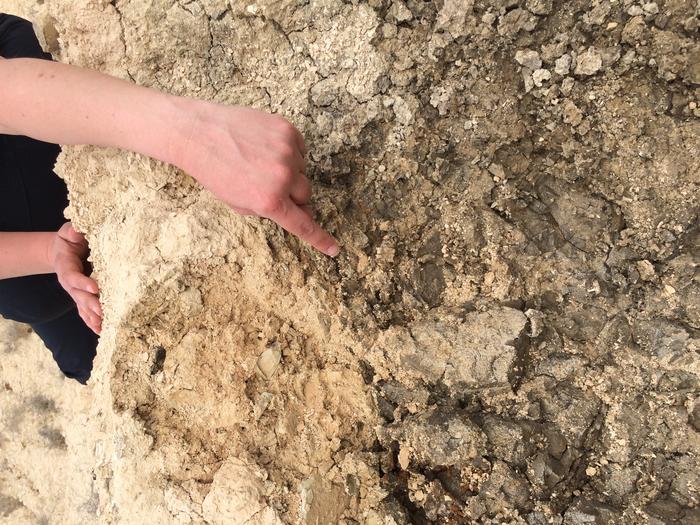 Cast of a bivalve shell preserved in 6.5-million year old sediment on Crete (Greece). The scientists analyzed the presences of organisms such as this to complete their extensive analysis.