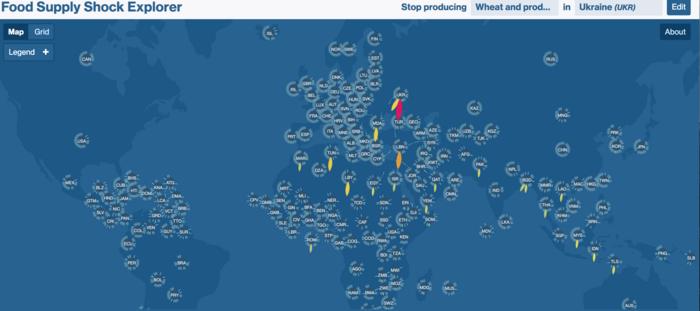 The war in Ukraine highlighted the vulnerability of the global food supply system. With this visualization (https://vis.csh.ac.at/food-supply-shocks/), users can see which food products are lost and which countries are most affected when a specific supplier stops producing a specific food product. The visualization shows a variety of scenarios related to Ukraine, including the one showing what would happen if Ukraine could no longer produce wheat.