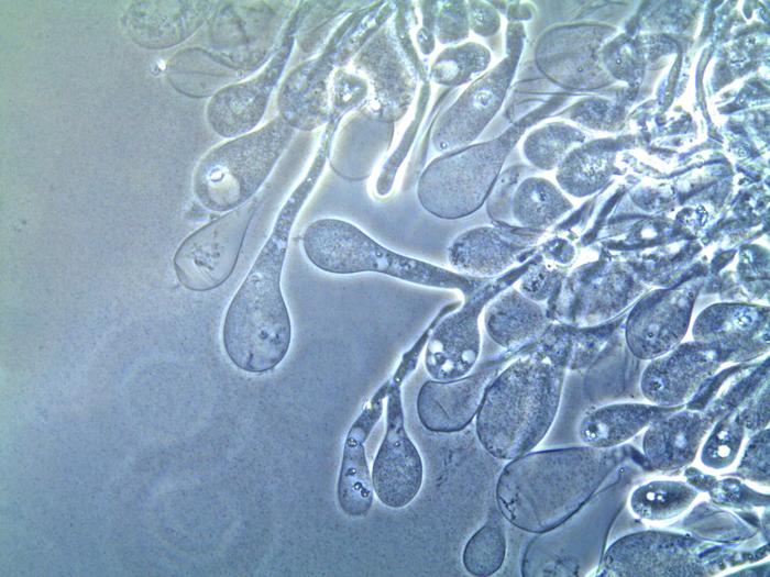 Image magnified a thousand times shows nutritive vesicles (gongylids) produced by the fungus Leucoagaricus gongylophorus, cultivated by the lemon leafcutter (Atta sexdens)