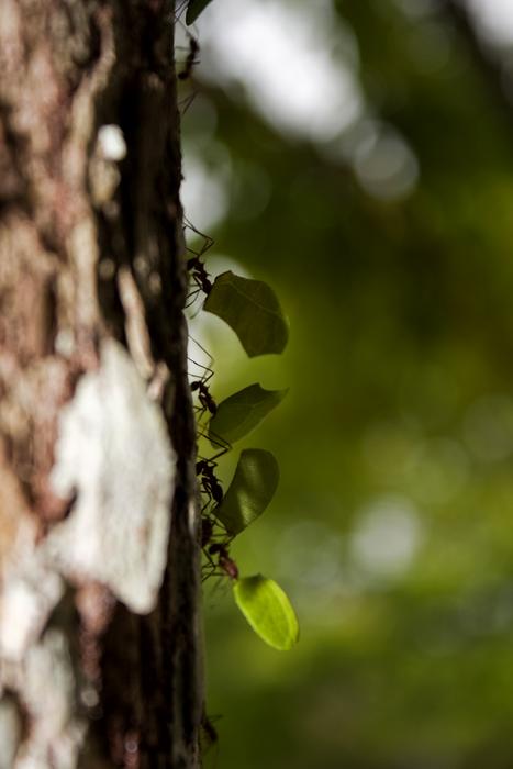 Lemon leafcutter Atta colombica workers carry leaves to the colony in Gamboa, Panama