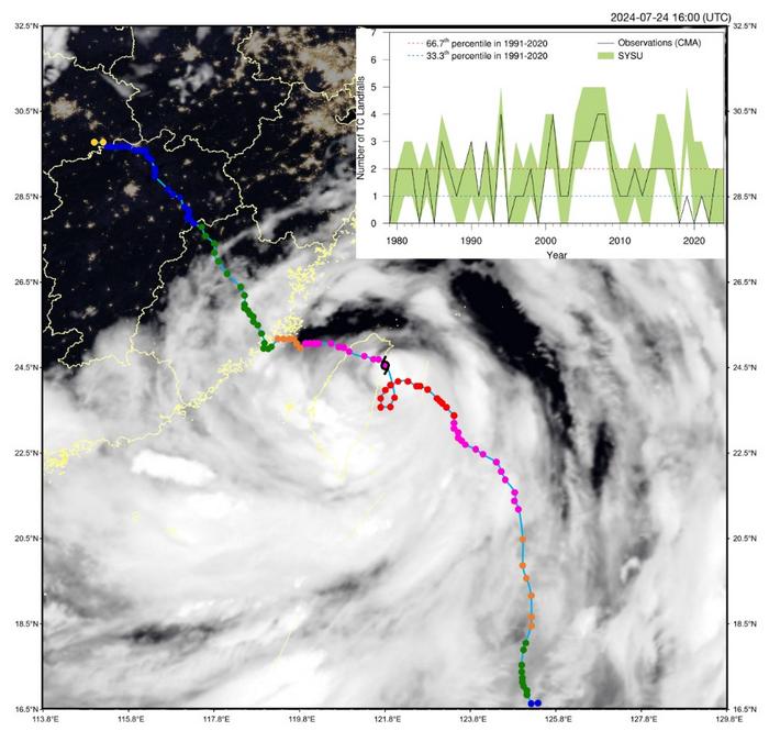 By every mid-May, the research team led by Prof. Kelvin Chan from the School of Atmospheric Sciences at Sun Yat-sen University (SYSU) provides meteorological services to China and neighboring areas, forecasting the number of typhoons for different regions in each year. Recently, the team developed a statistical seasonal forecasting model (SYSU Model) to forecast the number of typhoon landfalls on Taiwan Island. The related article was published recently in Atmospheric and Oceanic Science Letters.