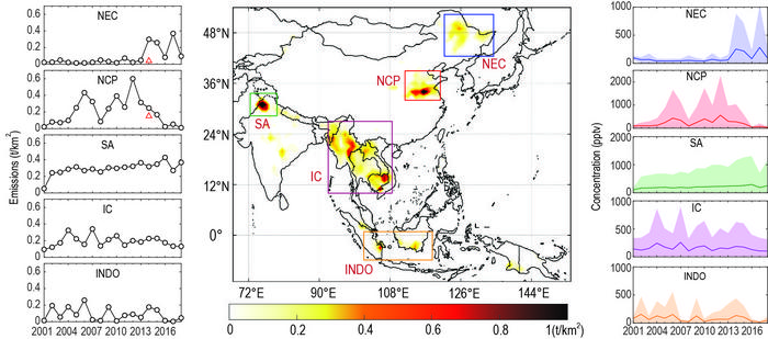 To fill this gap, a team led by Prof. WANG Zhe, Associate Professor of HKUST’s Division of Environment and Sustainability has developed a comprehensive, long-term, high-resolution chlorine emission inventory for open biomass burning across Asia. Through extensive simulations and analyses of the data from 2001 to 2018, the study has indicated substantial chlorine emissions from biomass burning in key regions such as North China, Northern India, and Southeast Asia. The study also highlights distinct seasonal patterns and significant spatial and interannual variability, primarily driven by changes in agricultural practices.