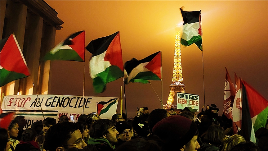 They gathered at Trocadero Square near the Eiffel Tower in the capital, demanding that French authorities block the gala organized by the Israel Forever Foundation.