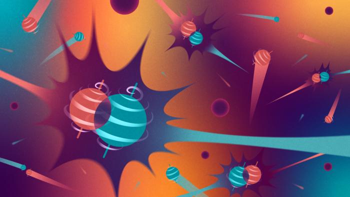 An artist’s interpretation of spin-aligned atoms during the process of fusion.