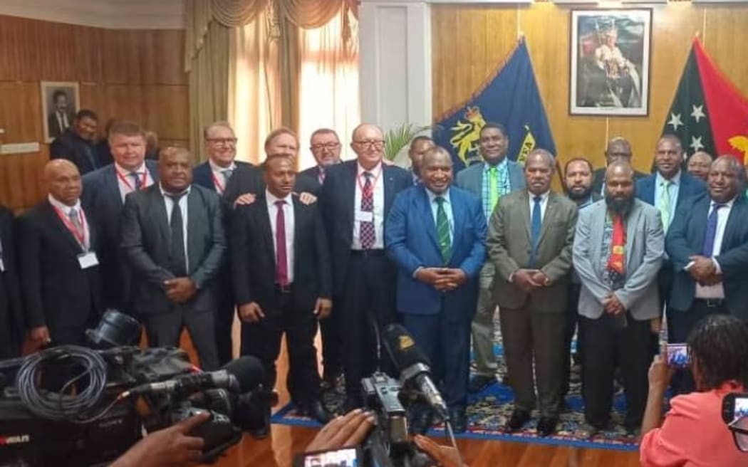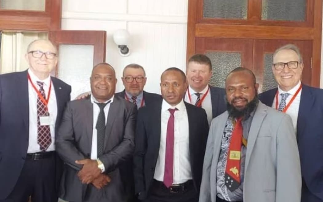 The directors of Epoca Group Ltd, Gilberto Maggiolo (far left) and Antonio Bosso (far right) were in PNG when the deal was signed in October. Photo: ABC / Supplied