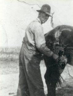 The author’s grandfather, William Bethel Hogan, with his horse in Indian Territory around 1900. (Russell Cobb), Author provided (no reuse)