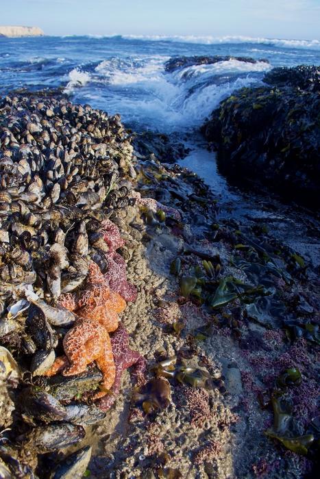 An intertidal species assemblage in Davenport Landing, California, USA. Species are being rapidly replaced in assemblages like this as temperatures change around the world.