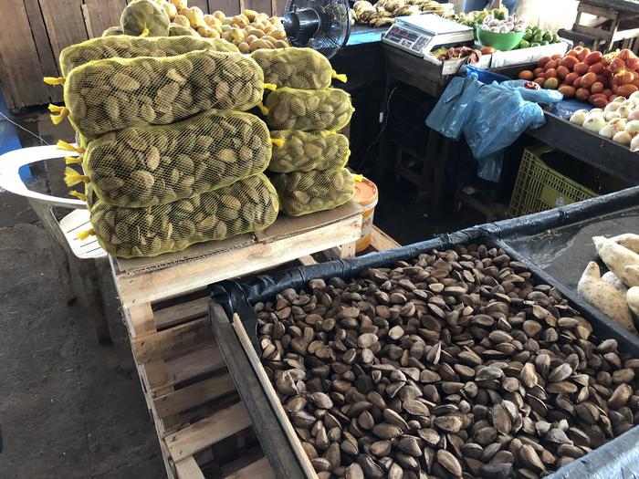 Sale of Brazil nuts at a local market