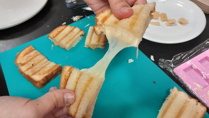 To create a cheesy product with the same texture as the real thing, scientists need to study a variety of physical attributes such as the melting, stretching, and oil-release upon grilling and heating.