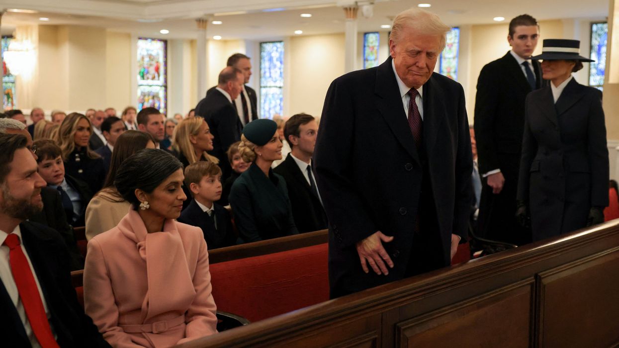 Donald Trump, JD Vance and his wife Usha Vance attend a service at St. John's Church on the inauguration day of his second Presidential term in Washington, U.S. January 20, 2025.