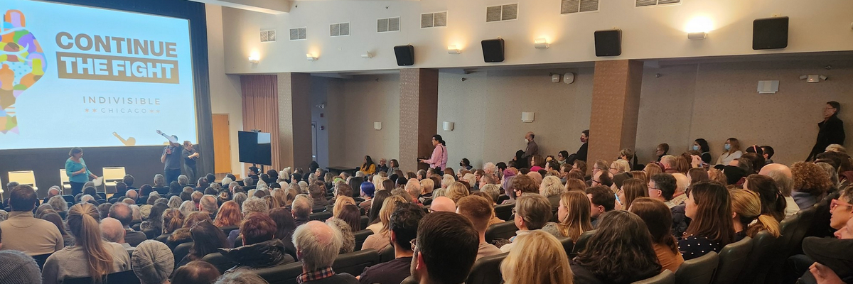 An Indivisible chapter in Chicago held a strategy session with more than 600 attendees on January 25, 2025.