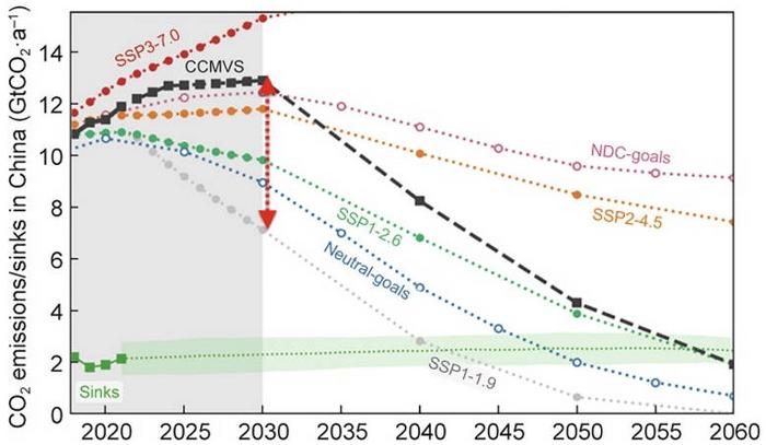 The researchers estimate that China’s anthropogenic CO₂ emissions will peak between 2028 and 2029, at around 12.8 billion tonnes, and then decline continuously. By focusing on renewable energy development and transforming its energy system, China can achieve carbon neutrality around 2060, with the help of 2.1 billion tonnes of carbon sinks from terrestrial ecosystems.