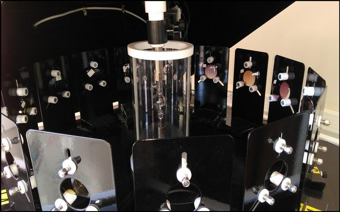 Solar simulator, with lenses in position, used in sunglasses testing