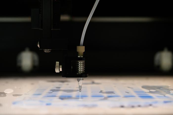 To find out which molecular tools the sulfate-reducing bacteria use, the researchers analysed the entire set of proteins present, known as the proteome. In total, they looked at the results of 80 different test conditions. Each time, they seperated the protein mixture in several steps, until each individual compound could be identified. Here, a separating gel containing blue bands with proteins of similar size and charge is placed on a light table. A robot arm cuts pinhead-sized pieces from the gel, which can contain from just a few to more than hundred different proteins. These pre-sorted proteins are then further analysed using a chromatograph and mass spectrometer.