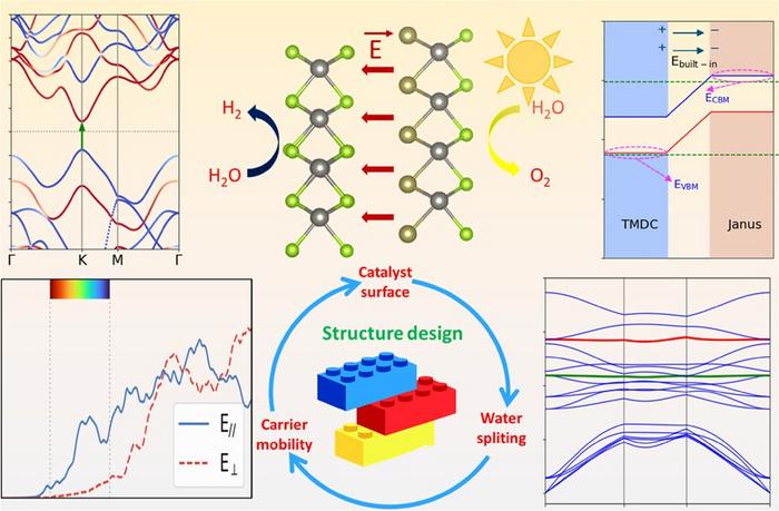 They examined 20 different pairings and confirmed that Janus heterobilayers are promising candidates for water splitting. Unlike traditional 2D materials, these unique Janus TMDCs feature different chalcogenide elements on each side, which creates intrinsic dipoles and strong internal electric fields. These natural electric fields enhance the separation of electric charges generated by sunlight, resulting in a significant boost in the photocatalytic performance of these materials. By uncovering the principles of atomic arrangement, we can provide definitive guidance for selecting optimal materials for photocatalytic solar conversion.