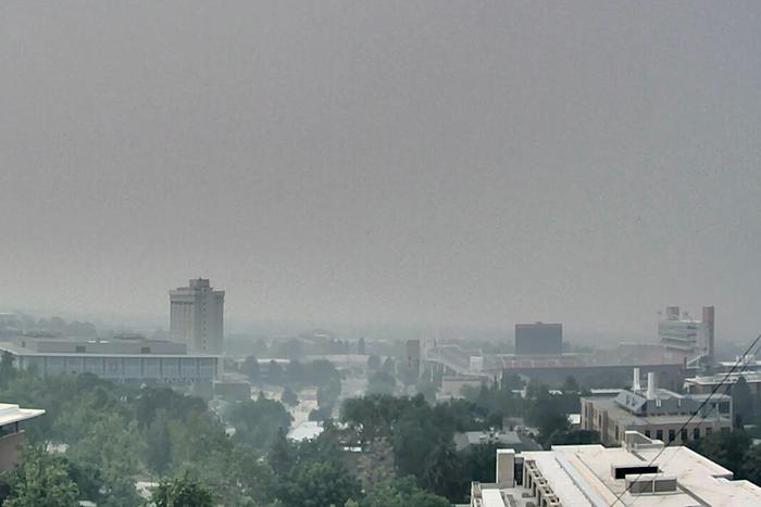 Wildfire smoke hangs over the University of Utah campus in Salt Lake City on Aug. 6, 2021