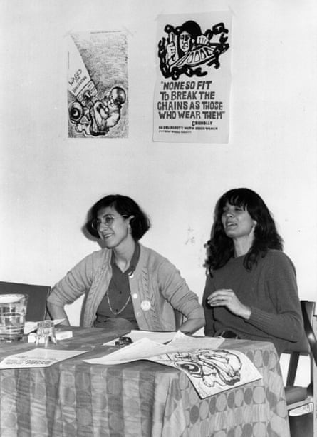 Silvia Federici and Judy Ramirez of Wages for Housework campaign in London, 1975. Photograph: Keystone/Getty Images