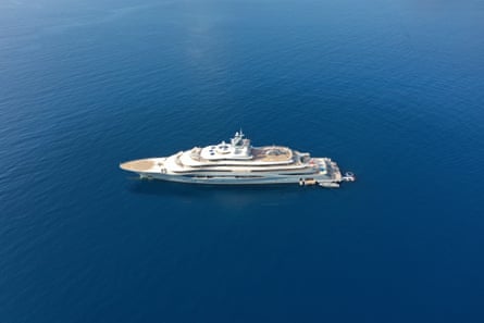 Jeff Bezos’s superyacht, Flying Fox, off the coast of Turkey in 2021. Photograph: Anadolu Agency/Getty Images