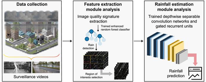 A research team from Tianjin University has developed an AI-powered method that turns everyday surveillance cameras into rainfall sensors. Their findings (DOI: 10.1016/j.ese.2025.100562) were published in April 2025 in Environmental Science and Ecotechnology. The study presents a hybrid framework combining image-quality analysis, enhanced random forest classifiers, and a deep learning regression model using depthwise separable convolution and gated recurrent units. Tested in the cities of Tianjin and Fuzhou, this novel system achieved superior accuracy and robustness in predicting rainfall, even during night-time or under poor visibility conditions.